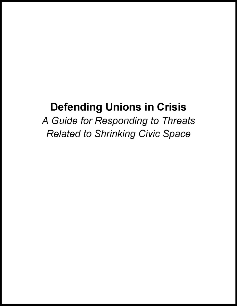 This guide is primarily designed for union organizations operating in a context of shrinking civic space and threats to fundamental democratic freedoms, like freedom of association, that threaten trade unions and activists.